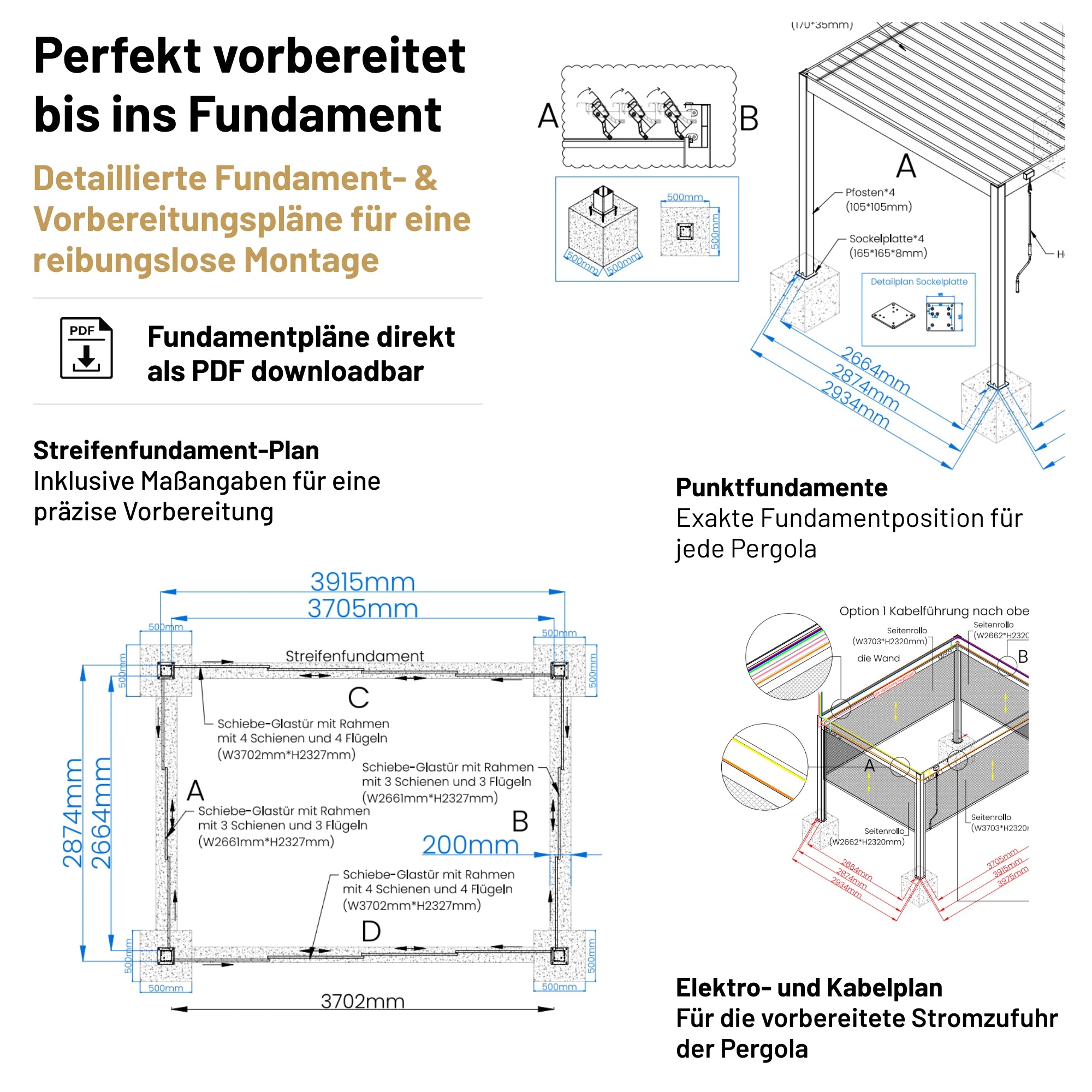 الميزة لك: سنرافقك بشكل فعّال، جميعالمستندات جاهزة، ويبدأ المشروع دون تأخير.ملاحظة: بالنسبة للبيرغولات القياسية، يمكنك تنزيل مخطط التركيب مباشرةً(الزر أسفل هذه الخطوة) والبدء فورًا بـتحضير الموقع.