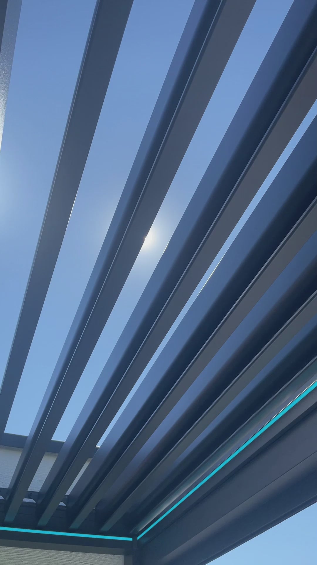 Unsere Sky Pergolen sind mit einem intelligenten Lamellendach ausgestattet, das sich per Knopfdruck öffnen und schliessen lässt. Integrierte Regenrinnen sorgen dafür, dass Sie auch bei einem Sommerregen angenehm trocken bleiben. Dank durchdachtem Zubehör können Sie Ihre Sky Pergola das ganze Jahr über nutzen – ob bei Sonne, Wind oder Regen.