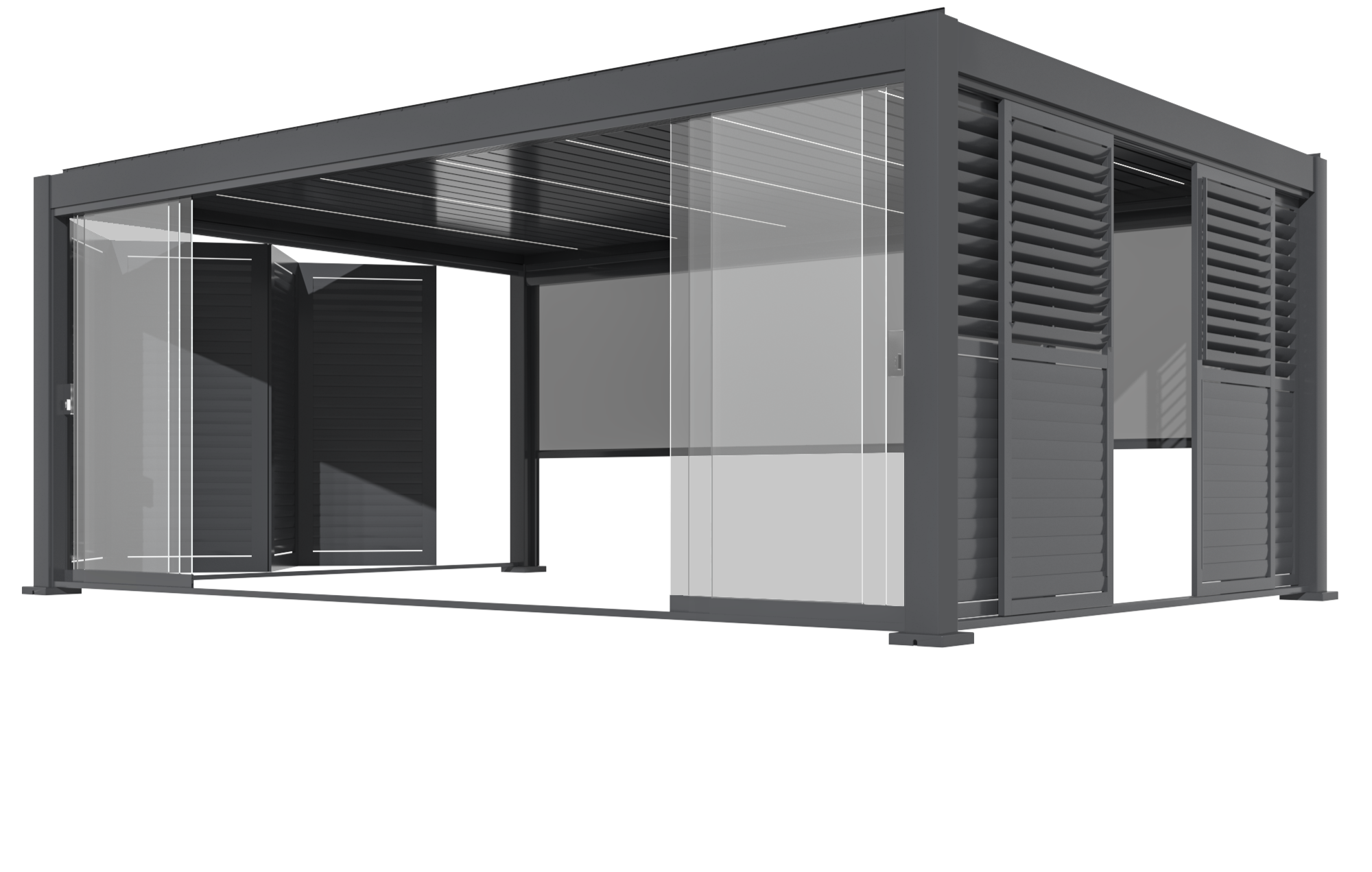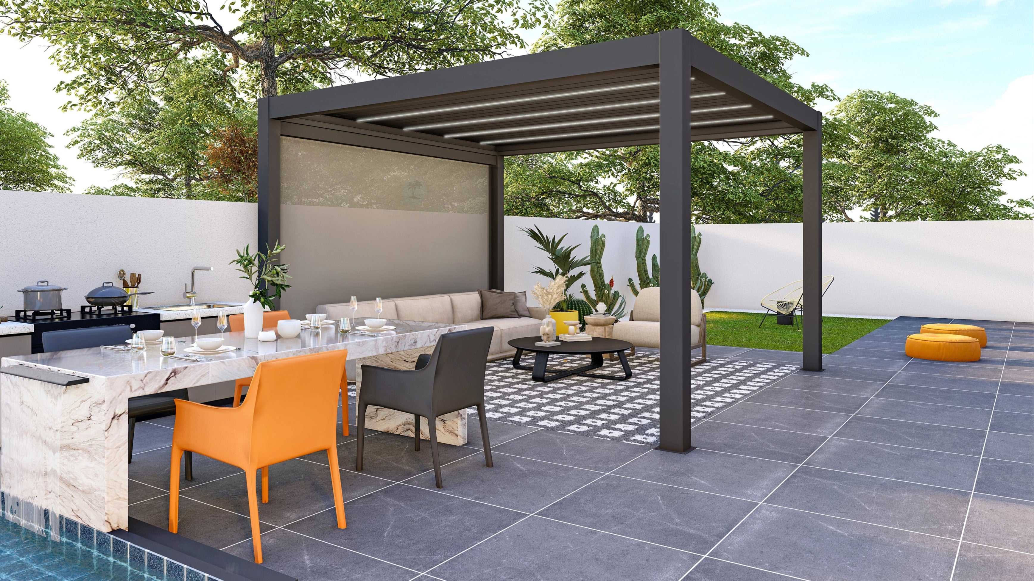 With its modern design and high-quality materials, it fits elegantly into the overall appearance of the pergola.