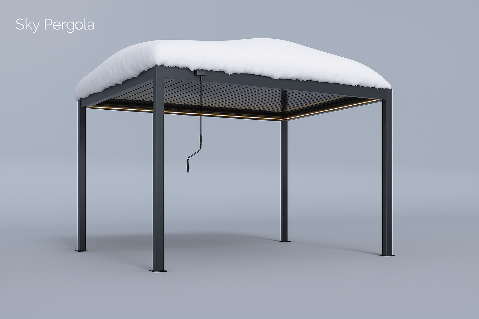 Our Sky Pergola models are designed for snow loads between 50 kg/m² and 150 kg/m², depending on the model. In alpine regions or during heavy snowfall, we recommend leaving the slats open to allow the snow to fall through unhindered and prevent excessive loads from being placed on the roof.