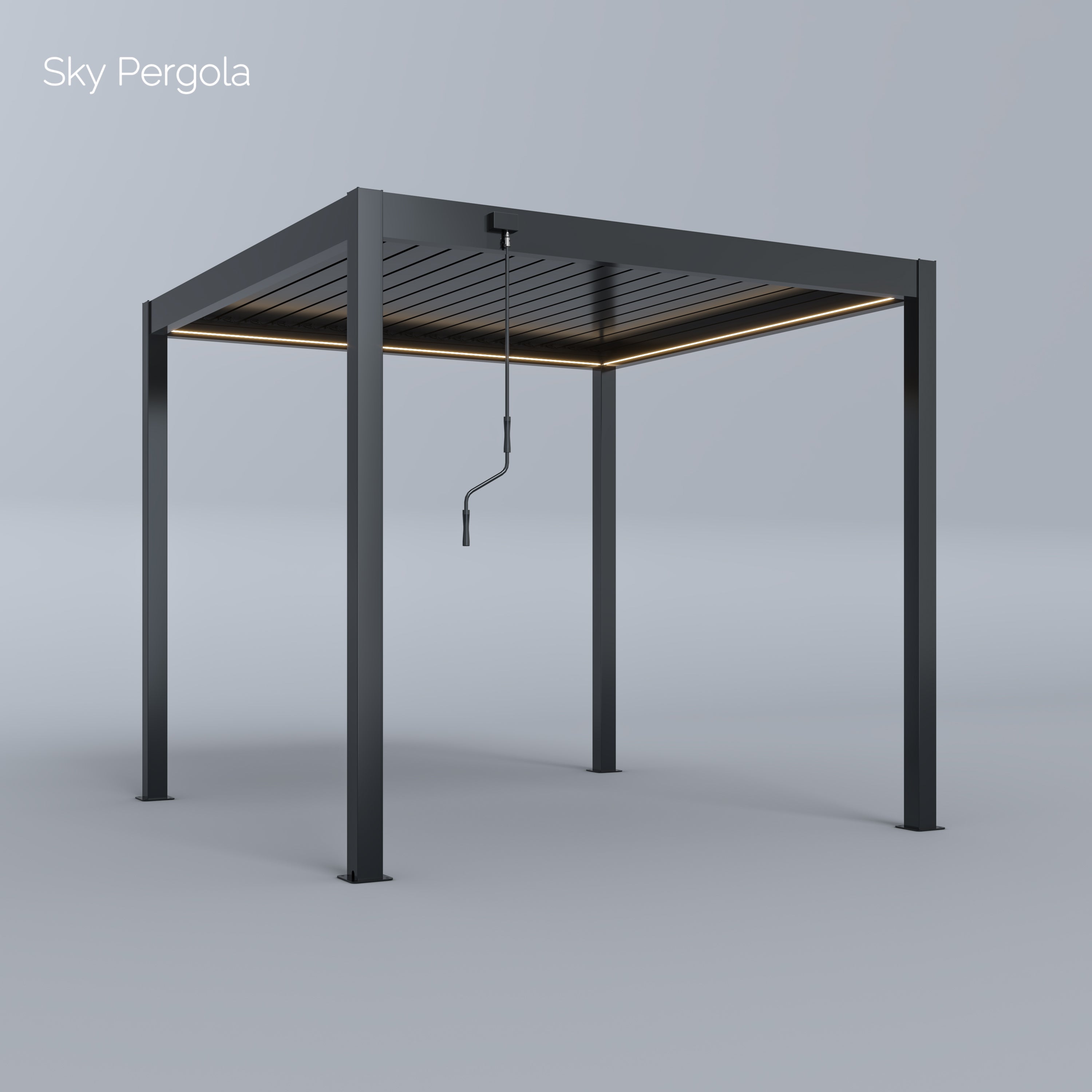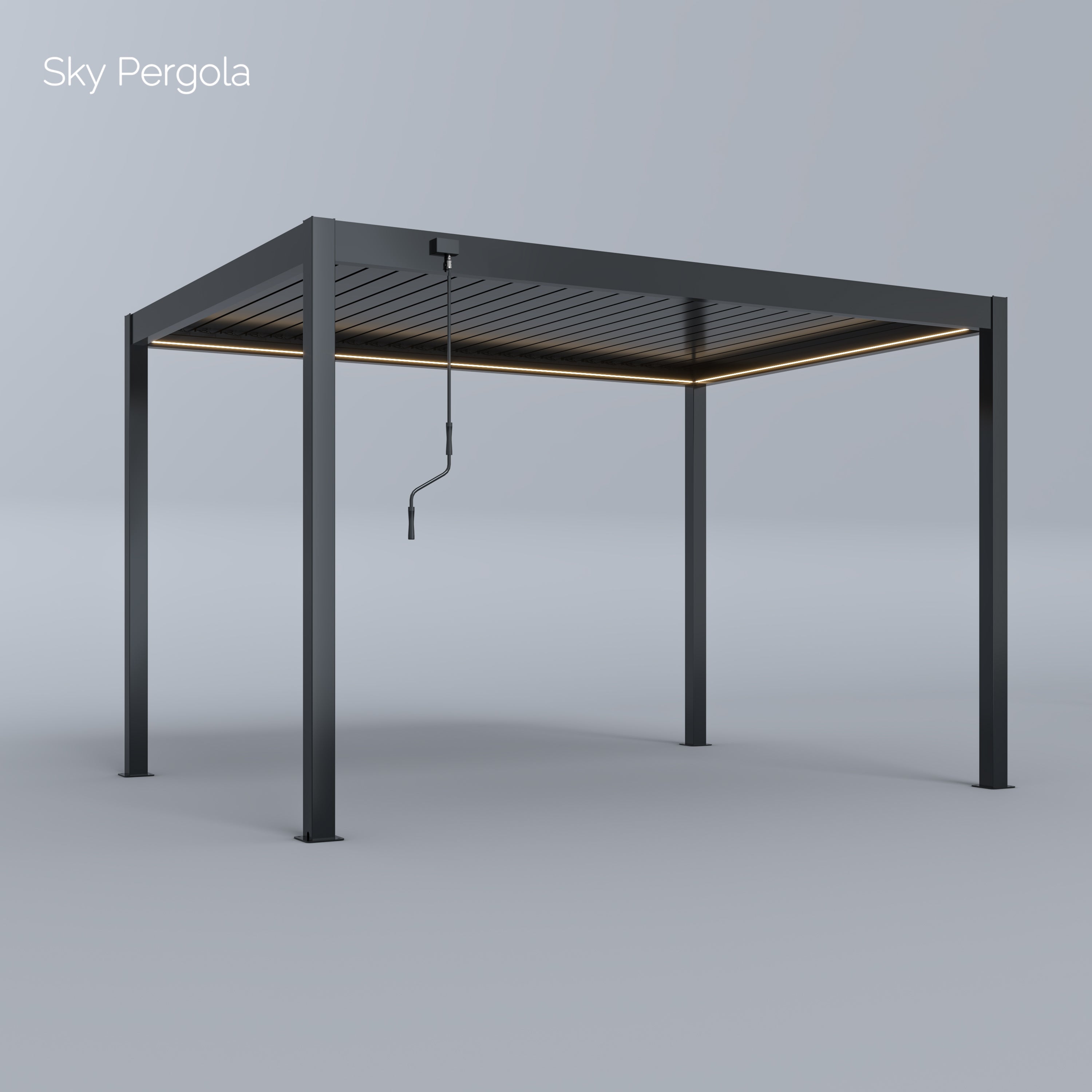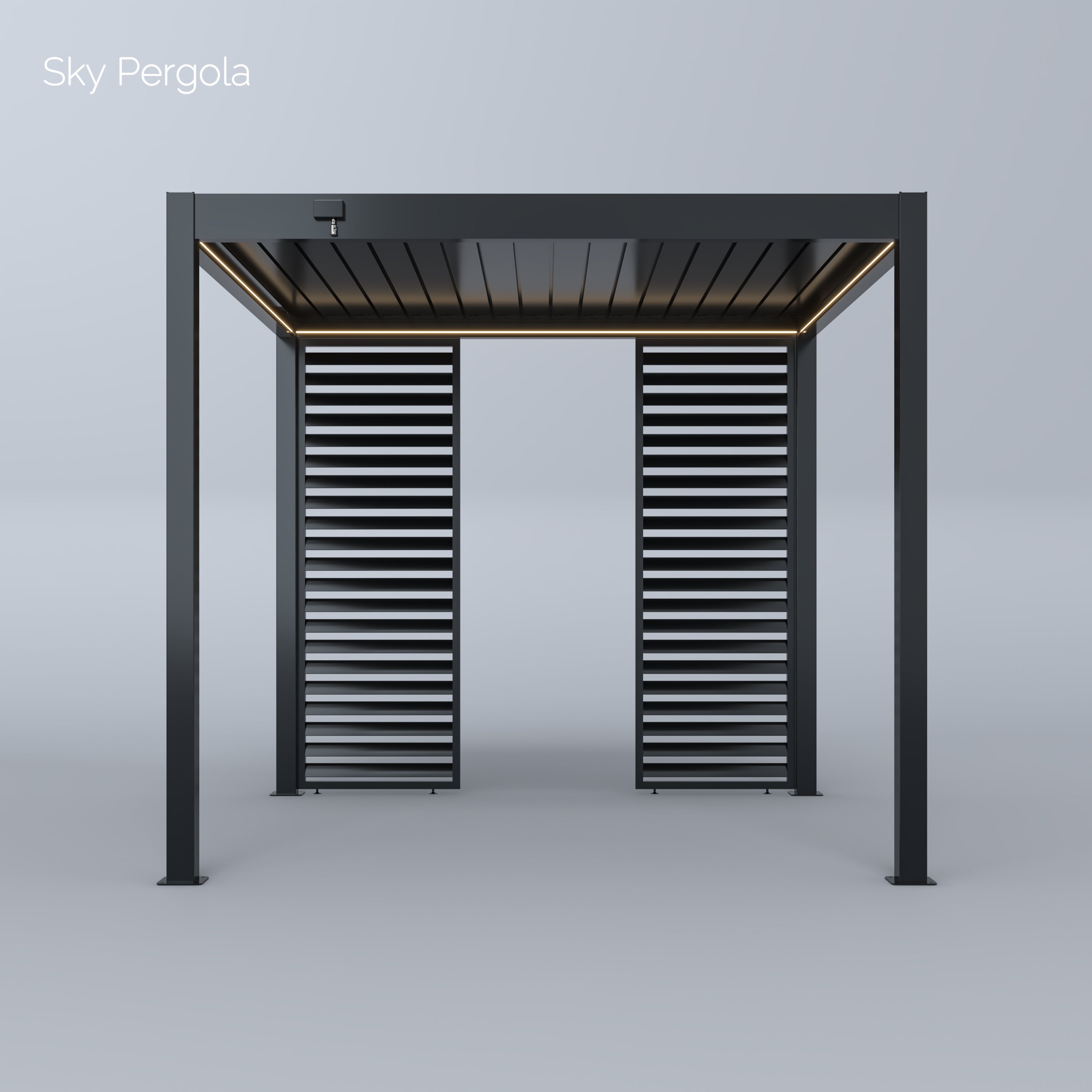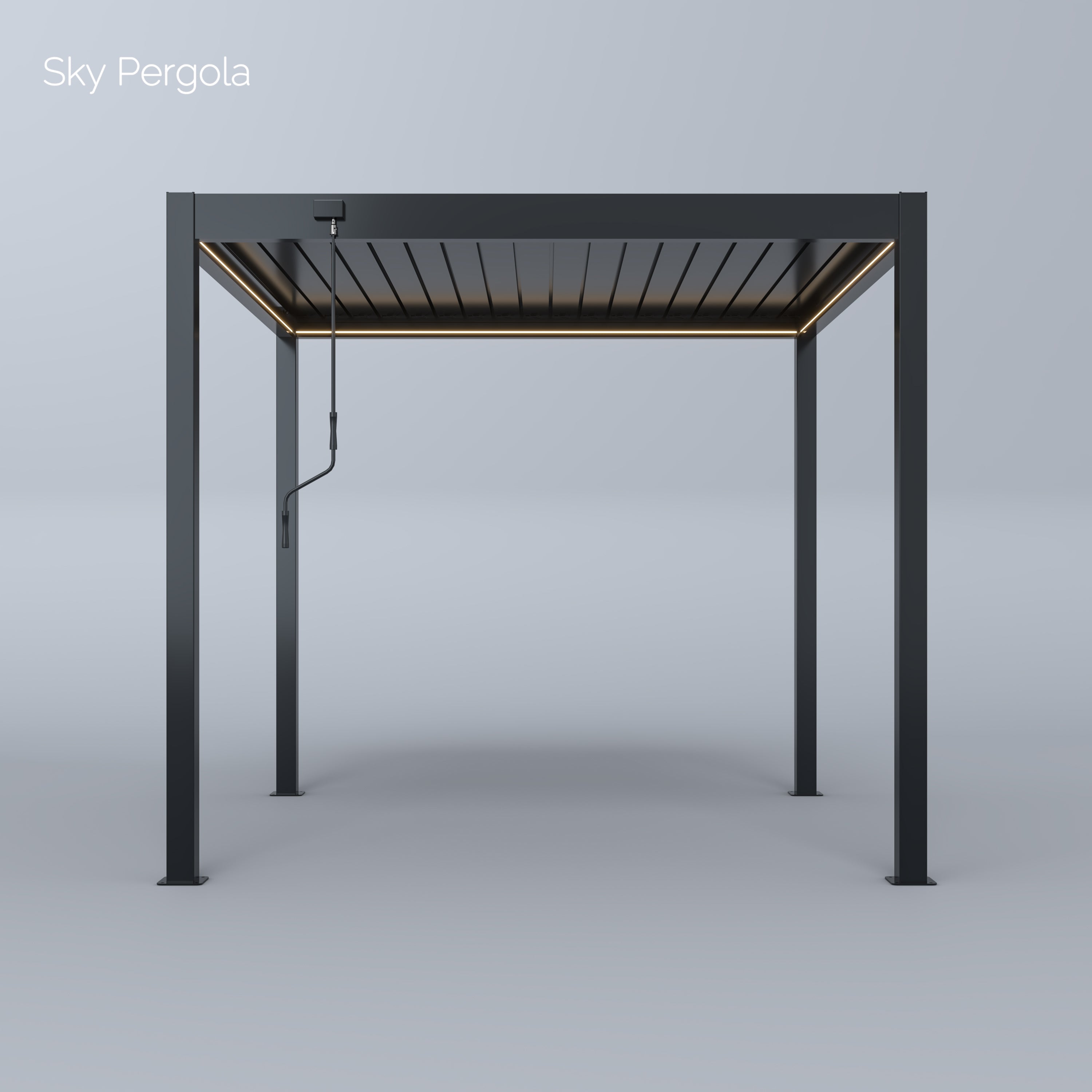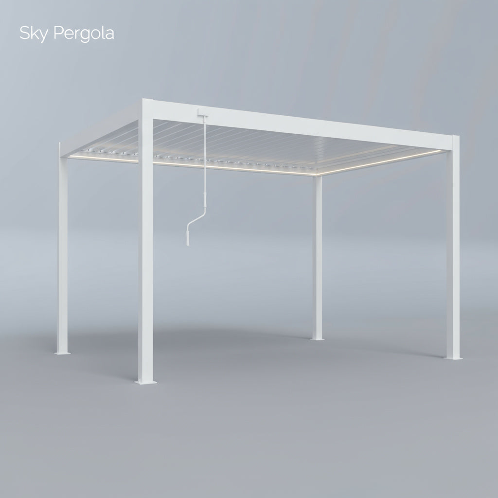 The standard height of the Sky Pergola is 250 cm. When the slats are open, an additional 8 cm is added, resulting in a total height of approximately 258 cm when opened.