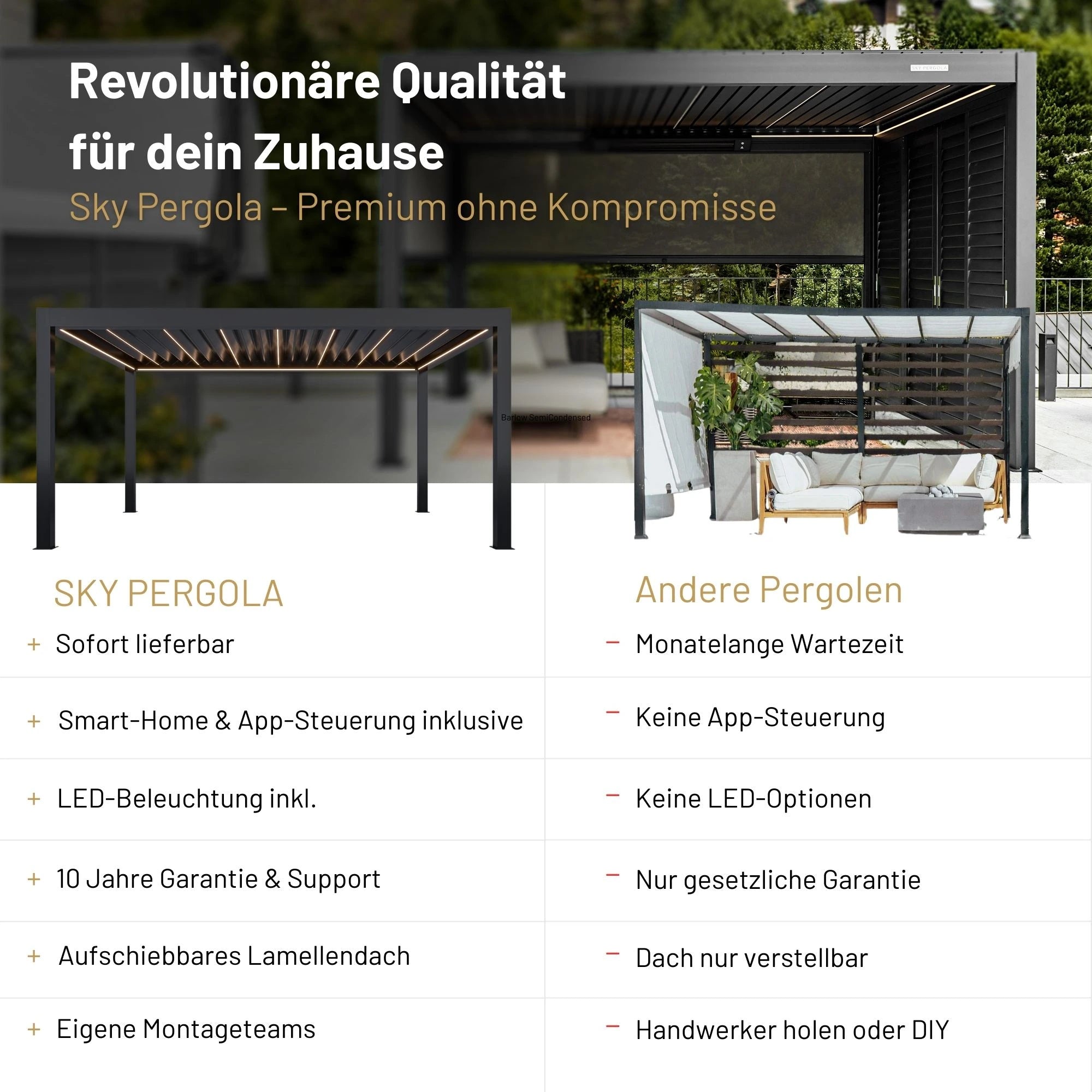 Wer maximale Sicherheit und Komfort möchte, entscheidet sich für unsere professionelle Montage durch SkyPergola.