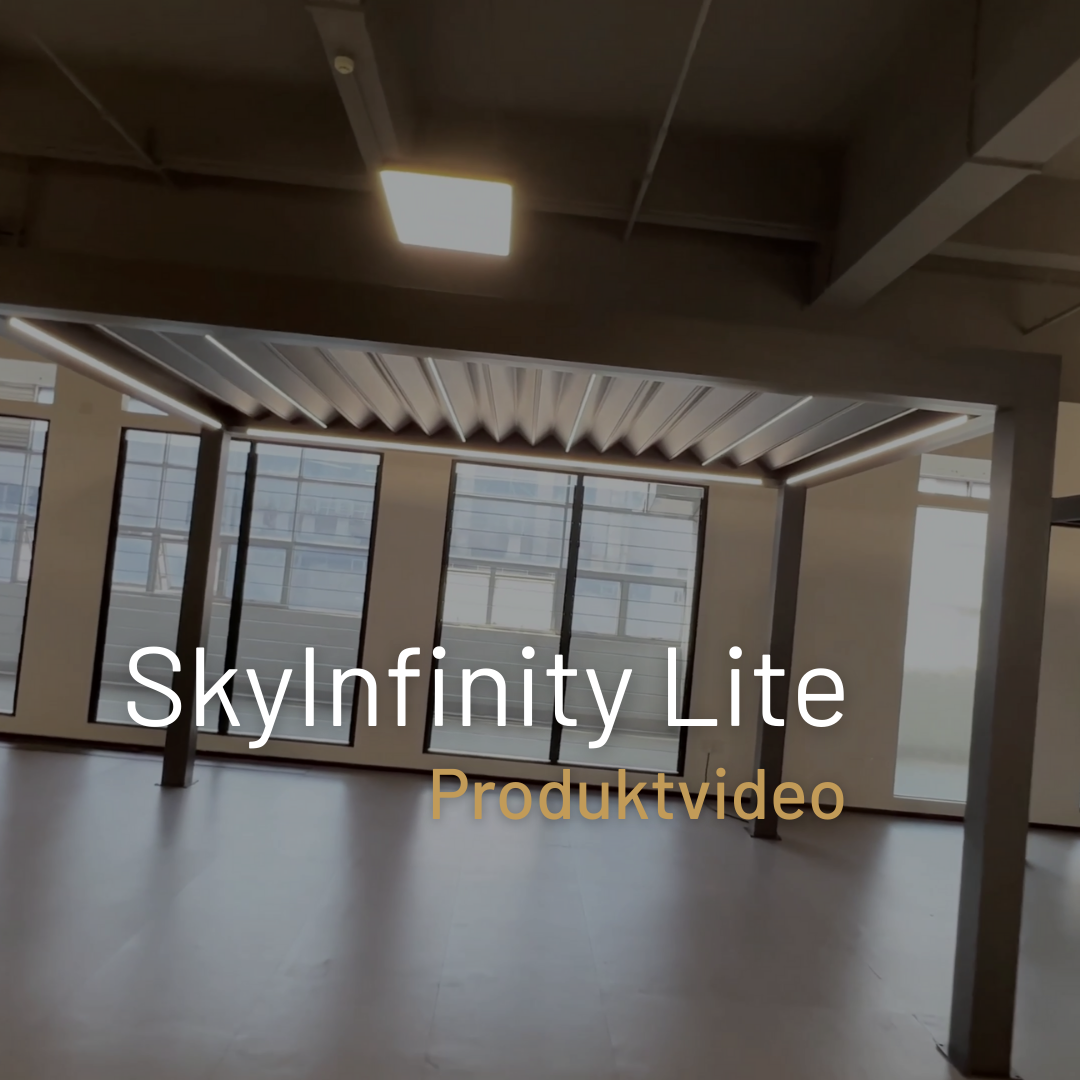 Unsere Sky Pergola Modelle sind je nach Modell für Schneelasten zwischen 50 kg/m² und 150 kg/m² konzipiert. In alpinen Regionen oder bei starkem Schneefall empfehlen wir, die Lamellen geöffnet zu lassen, damit der Schnee ungehindert durchfallen kann und keine übermässige Last auf dem Dach entsteht.